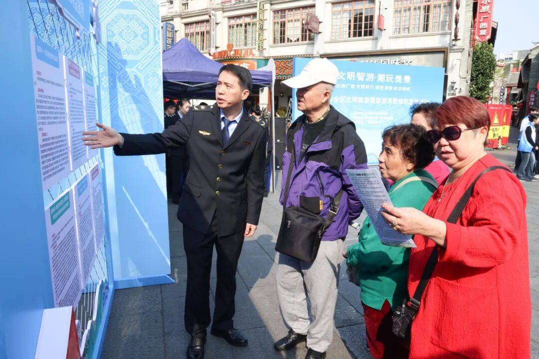 现场设置文明旅逛宣传展现区、遵规取信运营标杆展现区、旅逛平安学问宣贯区、旅逛依法宣传展现及打卡区、旅逛宣传岗等多个功能区域,